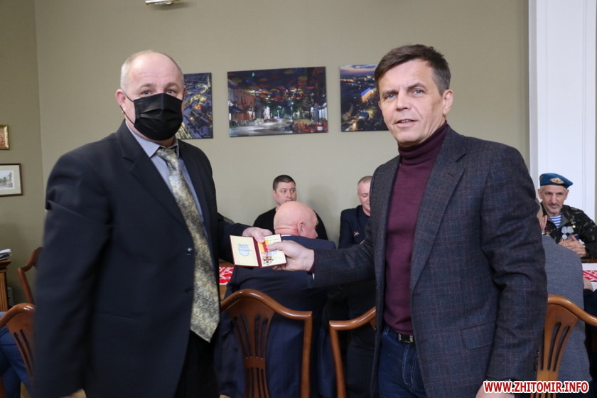 «Зустріч Житомирського міського голови Сергія Сухомлина з учасниками афганської війни та інших локальних війн відбулася сьогодні, 11 лютого. Обговорили ряд питань, які сьогодні найбільше турбують ветеранів: забезпечення житлом, а також медичними та соціальними послугами. З нагоди відзначення Дня вшанування учасників бойових дій на території інших держав та річниці виведення військ з Афганістану міський голова Сергій Сухомлин і голова Житомирської міської спілки ветеранів афганської війни Юрій Панасюк нагородили учасників афганської війни відзнаками», - йдеться у повідомленні.
