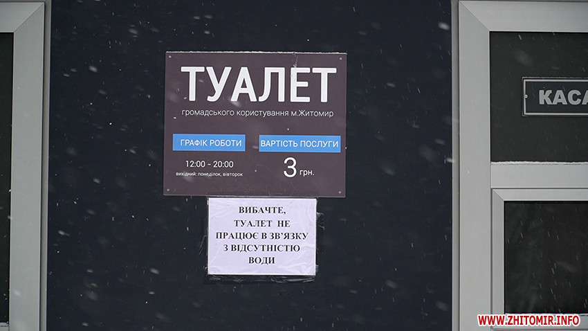Табличок з графіком роботи на туалетах немає. Як зазначили в «Інспекції з благоустрою» (на балансі цього комунального підприємства перебувають туалети в центрі міста), жодних неполадок у зв’язку з мінусовою температурою у трьох вбиральнях не було.