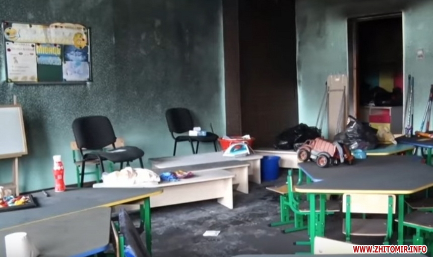 Нагадаємо, 9 лютого 2021 року близько 12:00 сталася пожежа в спальному приміщенні дитсадка в селі Харитонівка Коростишівського району: згоріла спальна кімната площею 40 кв.м., попередня причина займання – коротке замкнення електромережі. Наслідки пожежі дивіться на фото.