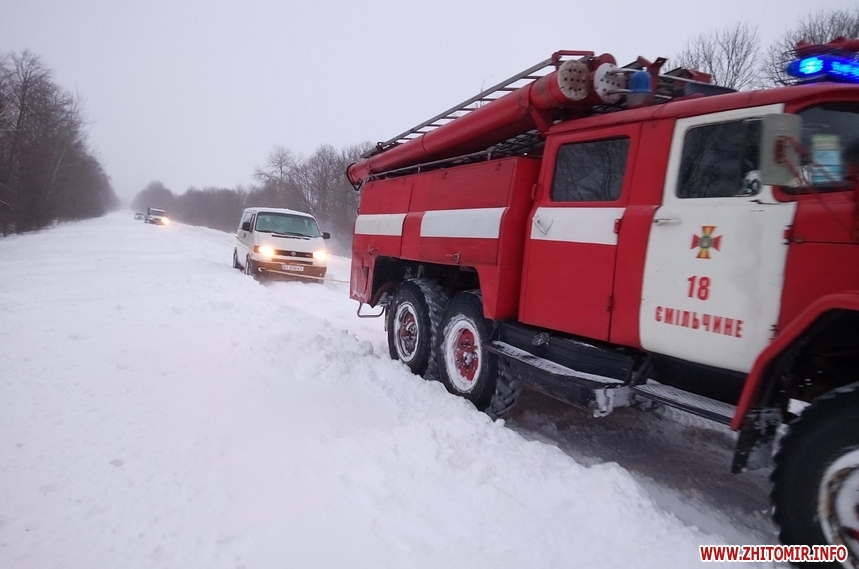Підрозділи ДСНС в Житомирській області упродовж доби 12 лютого вивільнили із снігових заметів 50 транспортних засобів, у тому числі 4 карети швидкої медичної допомоги, 4 автобуси, 37 вантажних та 6 легкових автомобілів.