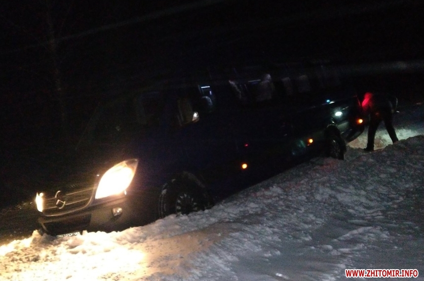 А вже 13 лютого вночі надзвичайники тричі надавали допомогу водіям рейсових та маршрутних автобусів, що застрягли в снігових заметах. Так поблизу с. Марківка Баранівського району маршрутний автобус через снігові перемети з’їхав у кювет. В транспортному засобі перебувало 10 пасажирів, які залишили автобус самостійно. В результаті взаємодії рятувальників та водія за допомогою тросу рятувальники визволили автобус зі снігової пастки та відбуксирували на вільну частину дороги. Постраждалих унаслідок події немає.
