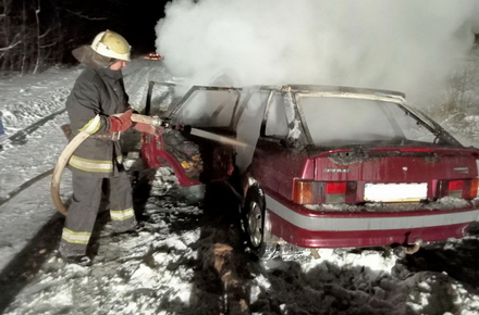 Зі слів водія, на слизькій дорозі його знесло на узбіччя, де він і загруз у снігу. Намагаючись вибратись, чоловік газував, після чого раптово легковик загорівся. Вже о 20:40 вогнеборці ліквідували пожежу, водій не постраждав.