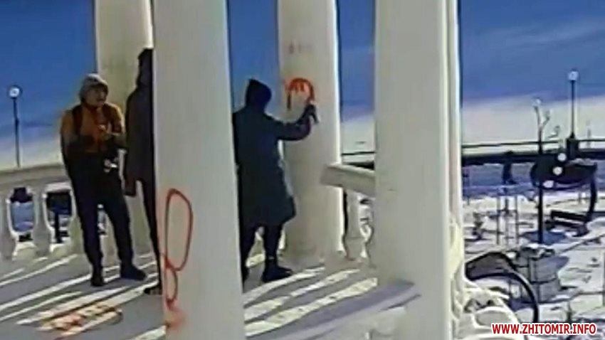У житомирському парку відпочинку імені Гагаріна 18 лютого двоє молодих хлопців та дівчина розмалювали фарбою альтанку.