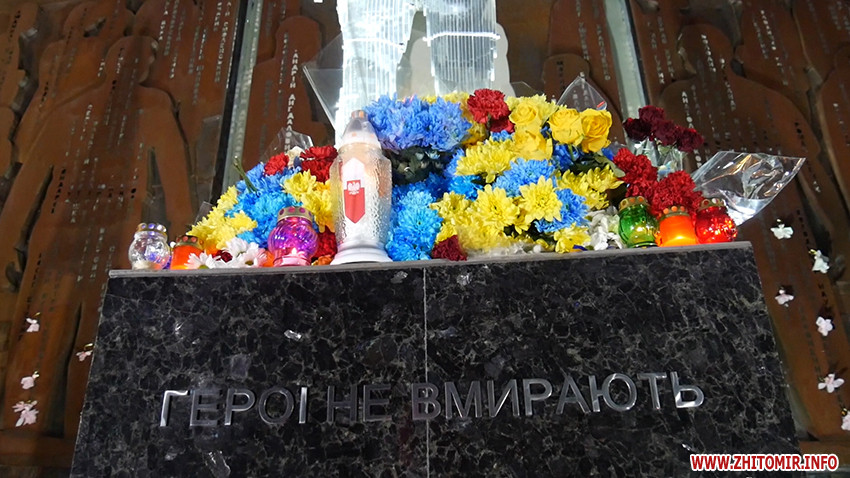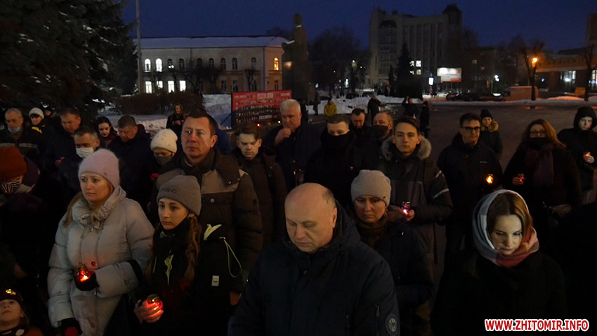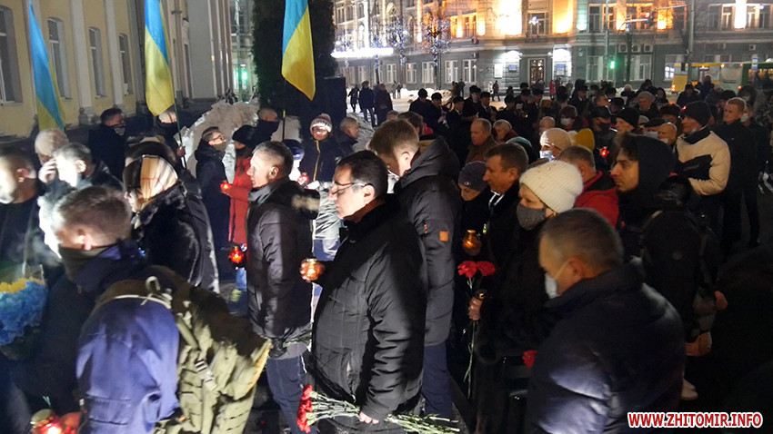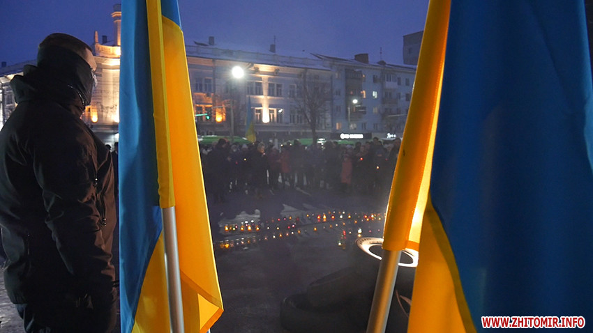 Ввечері 20 лютого близько двохсот житомирян прийшли вшанувати пам’ять Героїв Небесної Сотні, які загинули 7 років тому під час мирних протестів у Києві.