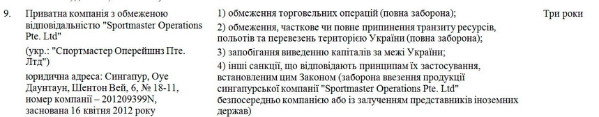 Серед інших під санкції потрапила мережа спортивних товарів «Спортмастер», один з магазинів якої знаходиться у Житомирі на вулиці Київській.