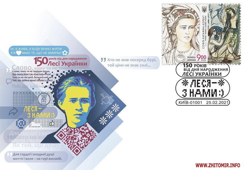 Укрпошта 25 лютого випустить художній немаркований конверт у сучасному дизайні, на якому Леся Українка зображена у стилі поп-арт. Введення в обіг приурочене до 150-річчя від дня народження поетеси.