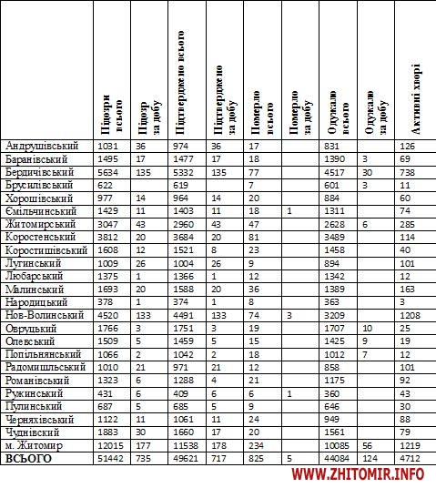 Зазначимо, що, за даними Міністра охорони здоров’я Максима Степанова, Житомирщина – «лідер» за кількістю нововиявлених випадків за добу. Однак вказано, що за добу в області зареєстрували 711 випадків COVID-19 (за даними ОДА – 717).
