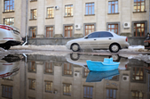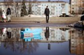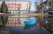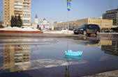 Але плюсова температура діє швидко і на деяких зупинках, переходах і провулках у центрі сніг утворив калюжі, пройти повз які не замочивши ніг, практично нереально. Житомиряни жартують, що якби був човен і вудка, то можна було б плавати і ловити рибу. Тож, настала пора створювати нові весняні мемчики, запускаючи кораблики. Допомогти нам відгукнувся юний Тімур. Кораблик у нас був 30 сантиметрів у довжину і 5,8 см висоти борту.