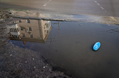 Якщо ще тиждень тому соцмережами гуляв мем про героїв відомого фільму, які застрягли у кучугурах снігу в Житомирі, то зараз відлига частково перетворила Житомир на маленьку копію Венеції.