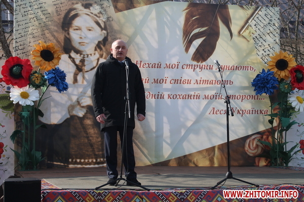 «Вшанувати пам'ять геніальної землячки з самого ранку приїхав голова Житомирської обласної ради Володимир Федоренко. Разом із заступником Володимиром Ширмою, депутатами обласної ради та представниками Новоград-Волинської громади голова облради поклав квіти до пам’ятника Лесі Українки на центральній площі міста та завітав до Літературно-меморіального музею Лесі Українки», - йдеться у повідомленні.