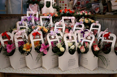 «Ця корзиночка 180 грн, така сумочка 150 грн, 160 грн, така - 250 грн, така - 120 грн, а котики по 50 грн», - показує квіткарка Марія.