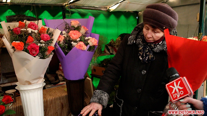 «Ми вирощуємо самі, у нас в Житомирі. Коштує квіточка (тюльпан) - 15-20 гривень, коробочки робимо по 180-200 грн. Роза привозна, але 30 грн, закупка в неї 25 грн, це так біля своїх тюльпанів. Люди зараз прицінюються, а потім будуть брати», - розповідає квіткарка Ірина.