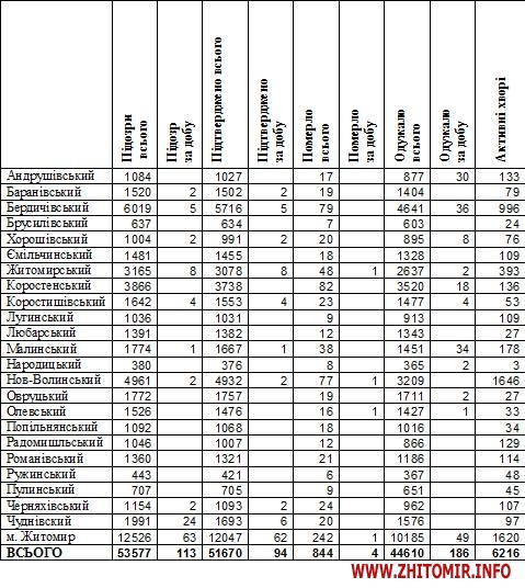 Станом на 09:00 год. 2 березня 2021 року в Житомирській області лабораторно підтвердили 51670 випадків коронавірусної хвороби. За минулу добу, 1 березня, було зареєстровано 94 нові випадки COVID-19. За період пандемії від ускладнень хвороби померли 844 пацієнти, у тому числі минулої доби зафіксували 4 летальні випадки. Одужало загалом 44610 осіб.