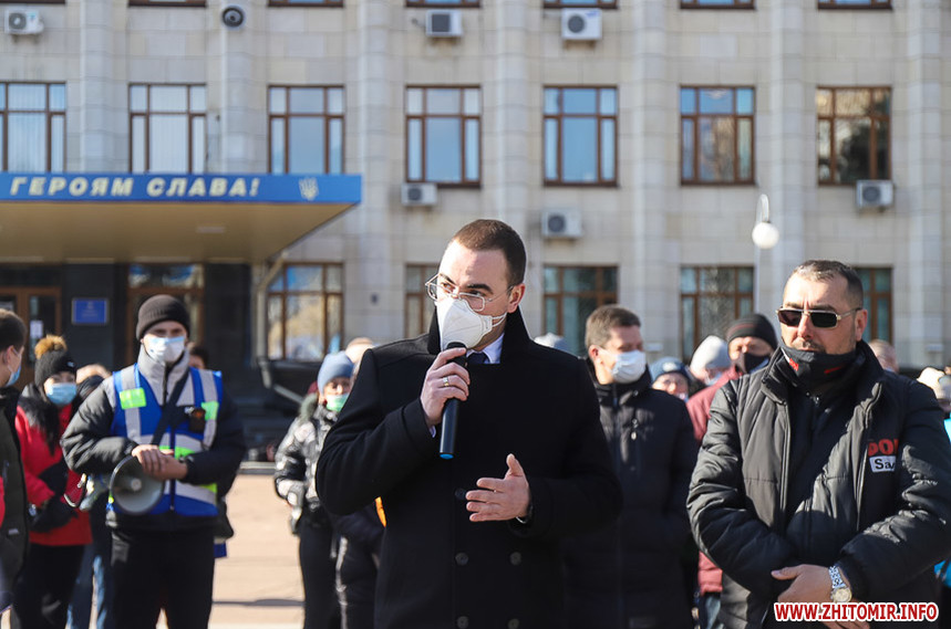 До мітингувальників вийшов заступник голови Житомирської облдержадміністрації Олександр Федько. Він зокрема повідомив, що протягом останніх тижнів на Житомирщині спостерігається різке зростання захворювання внаслідок цього було запроваджено червоний рівень карантину. У відповідь підприємці наголосили, що обласна адміністрація не справляється з пандемією.