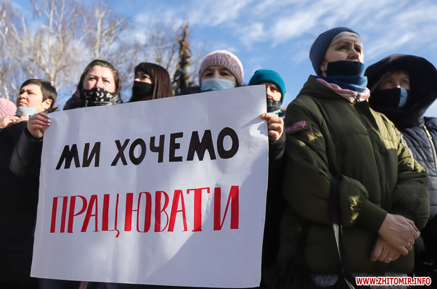 У Житомирі в перший день введення «червоної зони» кількасот підприємців влаштували мітинг. Вони вимагають внести зміни у рішення обласної комісії ТЕБ та НС та дозволити працювати малому бізнесу. На майдані Корольова зібралися підприємці з Житомира, Чуднова, Андрушівки та Бердичева.
