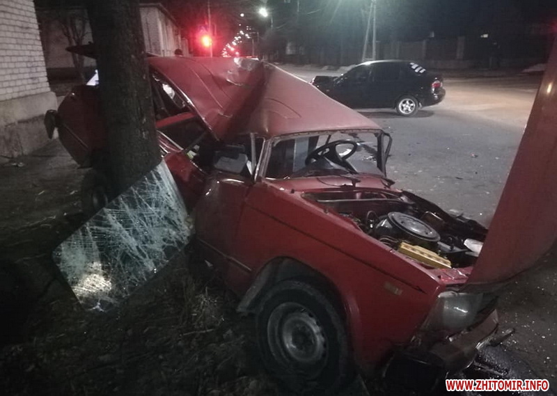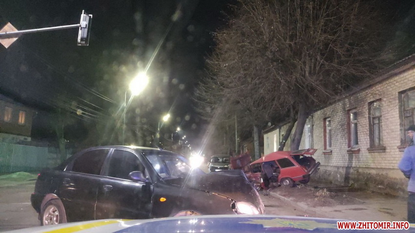 У Житомирі на перехресті вулиць Івана Мазепи та Героїв Крут ввечері 6 березня сталася дорожньо-транспортна пригода за участю ВАЗ та Lanos. Від удару один автомобіль відлетів в дерево.