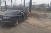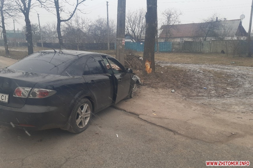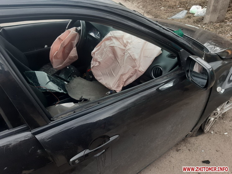 На вулиці Івана Гонти у Житомирі 8 березня Mazda в’їхала у дерево, після цього автомобіль перекинувся.