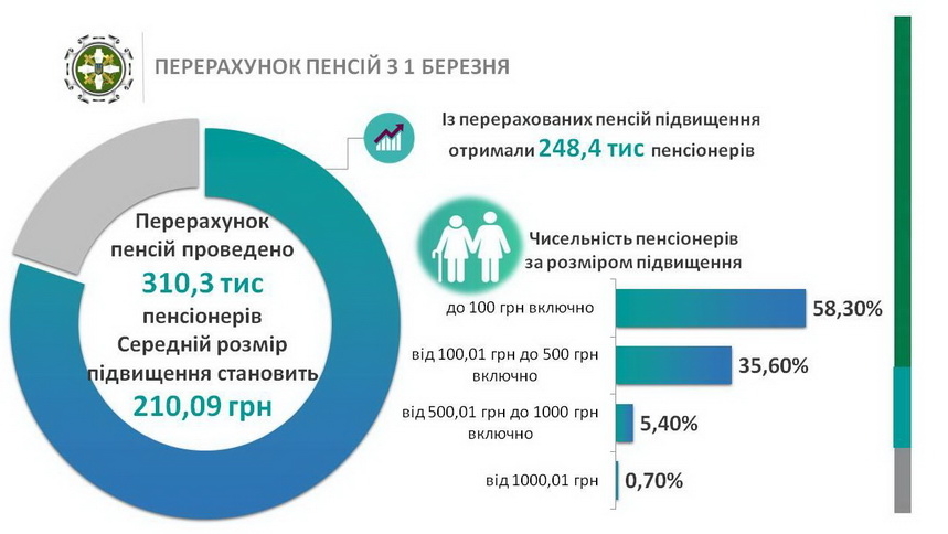 З 1 березня 2021 року в Україні розпочався автоматичний перерахунок пенсій. У Житомирській області індексацію провели для 310,3 тисяч осіб. Середній розмір підвищення – 210 грн.
