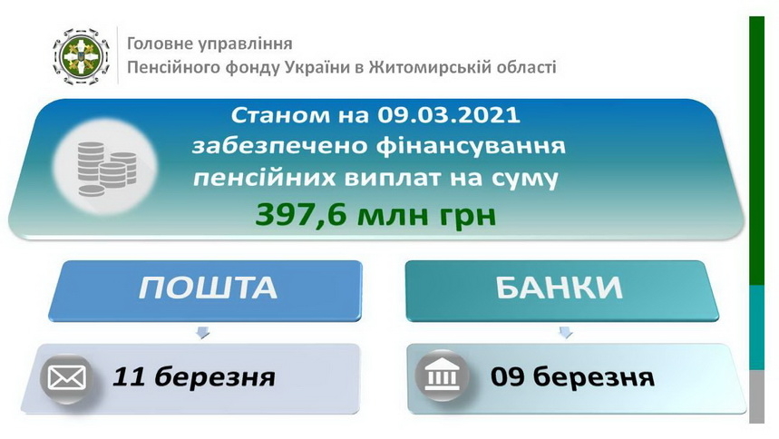 Зауважимо, що 9 березня ГУ Пенсійного фонду в Житомирській області поінформувало, що в області фінансування пенсій проходить згідно із затвердженим графіком.