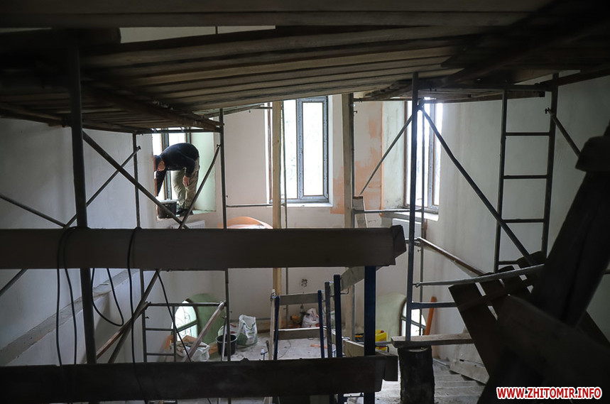 "Встановлюється грильято, монтується освітлення, кладеться плитка, облаштовуються сходові клітини. Повністю відновлені перекриття між першим та другим поверхами, стіни зашпакльовані, обшиті гіпсокартоном, покладена плитка, проведені роботи по фасаду, встановлено вентиляційну систему та опалювальний теплопункт. Підрядник обіцяє завершити до кінця цього року і каже, що вже виконано близько 70-80% робіт", - розповів директор Житомирського обласного краєзнавчого музею Роман Насонов.