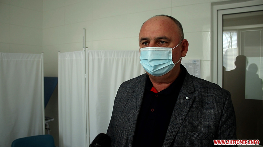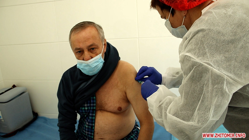 Тоді ж у житомирській міській лікарні №2 почали вакцинувати медпрацівників, які погодилися на щеплення та працюють з хворими на коронавірус. Першим з таких лікарів став Василь Шутенко.