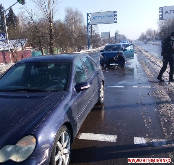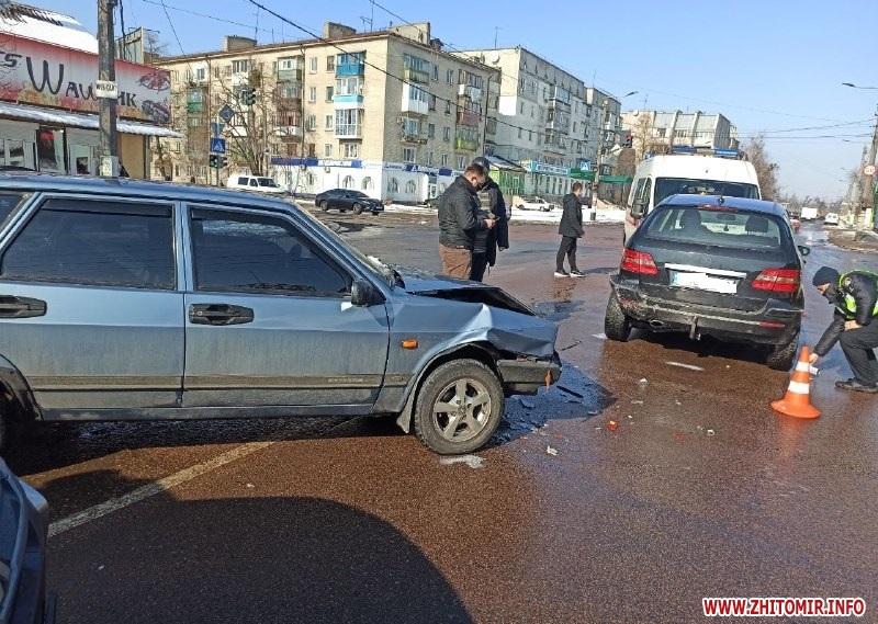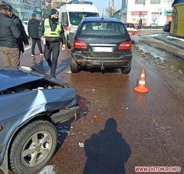Упродовж години 13 березня в Житомирі сталося дві дорожньо-транспортні пригоди. Так, зокрема, на проспекті Незалежності зіткнулися автомобілі ВАЗ і Mercedes-Benz. В одному з автомобілів їхала вагітна жінка, яку після ДТП госпіталізували.
