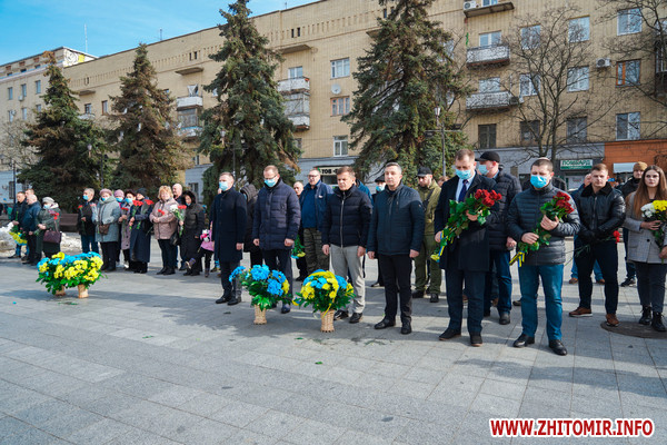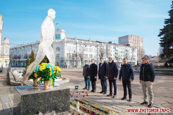«У Житомирі сьогодні, 14 березня, покладанням квітів до пам’ятного знака Героям Небесної Сотні та меморіальних дощок героям АТО/ООС вшанували мужність і патріотизм усіх воїнів, зокрема, героїв-добровольців, які загинули, захищаючи незалежність, суверенітет та територіальну цілісність України», – йдеться у повідомленні.