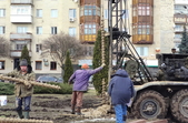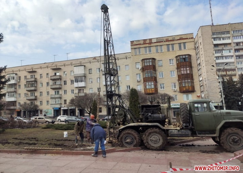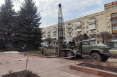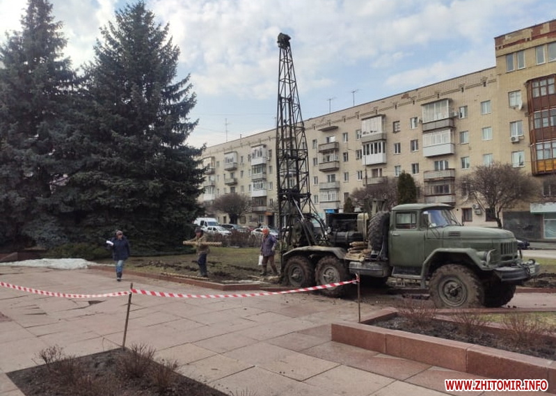 На території скверу проводять буріння за допомогою спеціальної техніки, а навколо встановили обмежувальну стрічку.