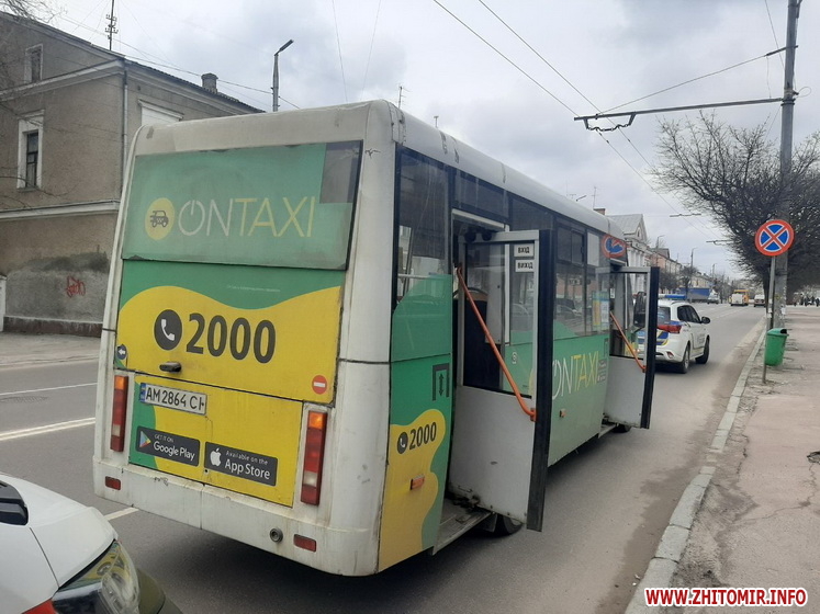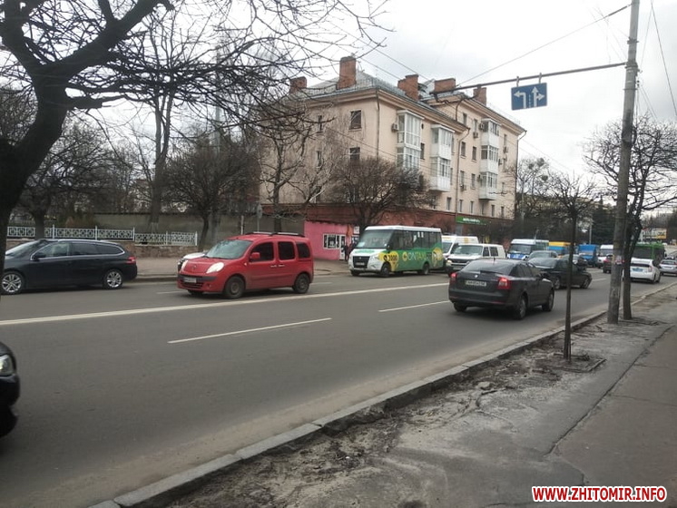 На вулиці Перемоги в Житомирі в обідню пору 19 березня сталася дорожньо-транспортна пригода за участю маршрутки. Травми отримала пасажирка.