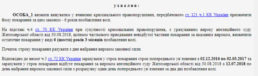 Про це йдеться у вироку суду, оприлюдненому в Єдиному державному реєстрі судових рішень.