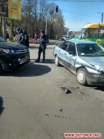 У Житомирі 24 березня на перехресті вулиць Лесі Українки та Перемоги не розминулись Toyota та Audi.