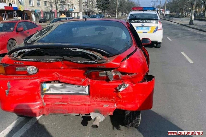 Водій Volkswagen, який 24 березня біля пішохідного переходу на Чуднівській у Житомирі в’їхав у Mazda, перебував в стані алкогольного сп’яніння і є військовослужбовцем. Mazda від удару збила пішохода, травми отримала і пасажирка автомобіля.