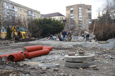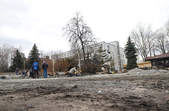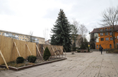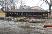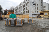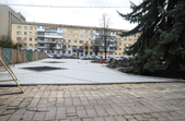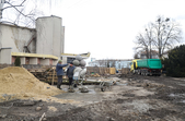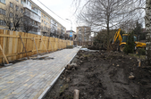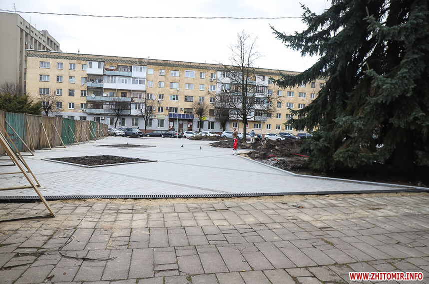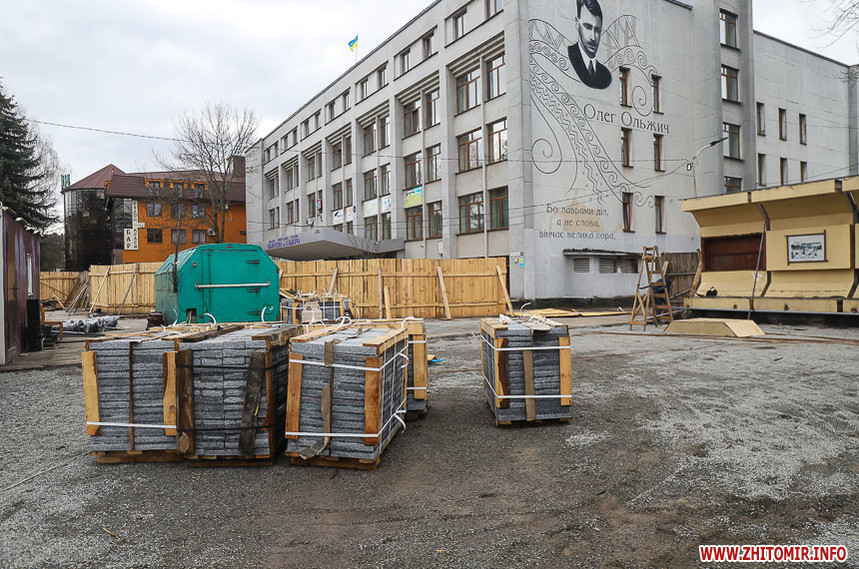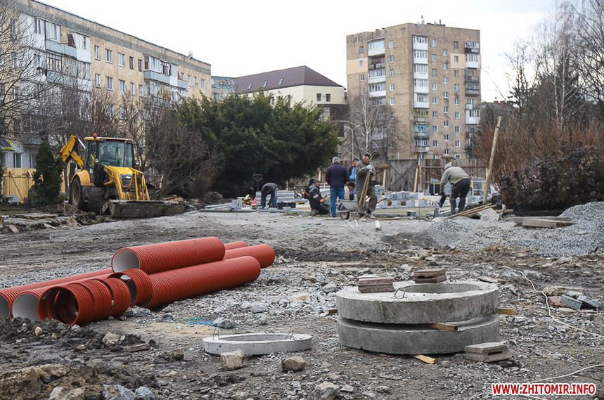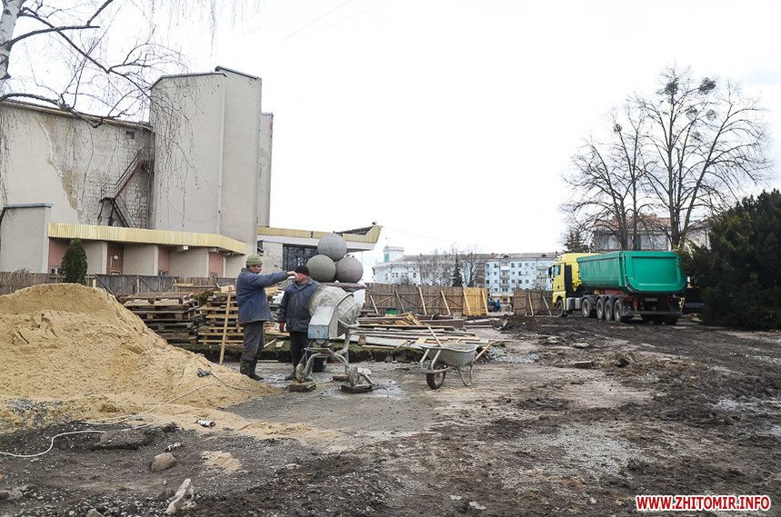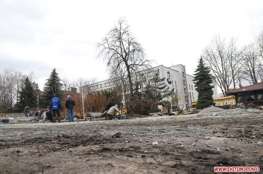 Зранку тут активно працює більше десяти будівельників: вкладають плитку, проводять заміри, розмішують бетон тощо.
