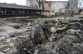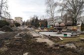 Старий гранітний фонтан вже повністю демонтували. На його місці зараз знаходяться лише щебінь, пісок та лежать новенькі каналізаційні люки.