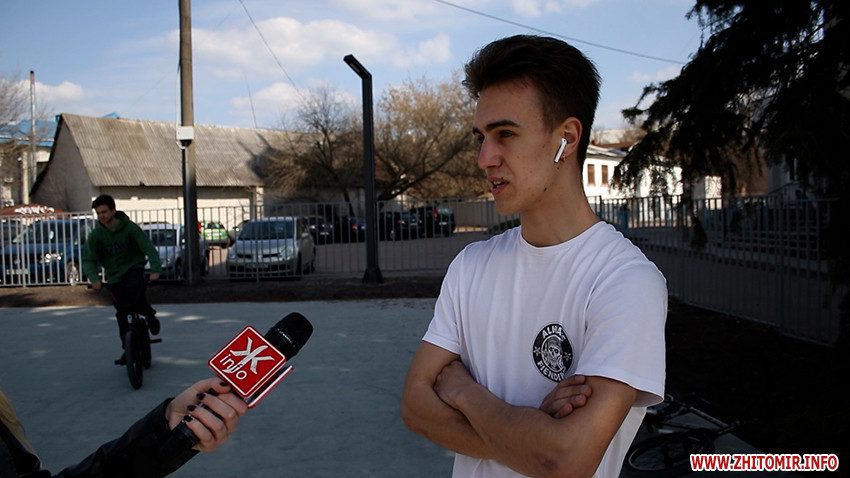 «Викручуємося як можемо, тому що дуже хочеться кататися. Покриття відмінне, чекаємо поки привезуть фігури. Найчастіше ми катаємось на площі Перемоги у центрі, біля пам'ятника Шевченку, також є невеликий скейт-парк у Зарічанах, але він не дуже підходить для катання на BMX. Місце чудове, тому що поруч є магазини, це в центрі міста і зручно діставатися. І як я розумію, будуть ще дерева, буде літом тінь», - ділиться Денис.