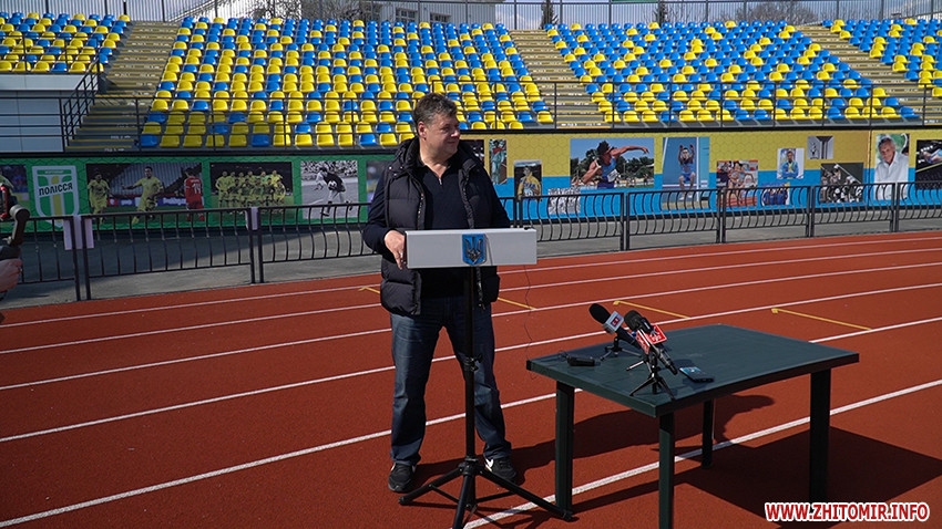 «Історія «Облдержадміністрація - стадіон Полісся» перегорнута. Що собою передбачає друга черга: це благоустрій територій, починаючи від вхідної групи, проведення зовнішніх інженерних мереж, встановлення інформаційного табло, облаштування тенісних кортів з освітленням, створення тренувальних секторів з легкої атлетики, штовхання ядра, стрибків в довжину, мініфутбольного поля, монтаж навісу над західною трибуною, огорожі біля центрального входу. Частина з цих робіт вже виконана. Разом з тим додатково потрібно запроєктувати систему радіо оповіщення, відеоспостереження, будівництво серверної для їх обслуговування, встановлення турнікетів з електронним зчитуванням квитків для входу-виходу вболівальників. Крім того, існує окремий проєкт з реконструкції західної трибуни, який на сьогодні не завершений. Цей проєкт включає в себе реконструкцію самої трибуни, підтрибунних приміщень, легкоатлетичного манежу та допоміжних приміщень, внутрішніх інженерних мереж. Також до складу проєкту входить капітальний ремонт зовнішніх туалетів, вхідної арки та частковий благоустрій території. Поки все не буде виконано, здати в експлуатацію західну трибуну неможливо. Ще раз повернусь до громадського обговорення. Якщо громада буде приймати рішення, тоді цей проєкт буде далі розроблятись обласною державною адміністрацією і будемо його впроваджувати. Сергій Іванович (Сухомлин, мер Житомира - ред.) на відкритті футбольного матчу, що він готовий організувати таке громадське обговорення, організувати збір підписів. Я передав м’яч на бік житомирської громади і чекаю пропозицій», - сказав Віталій Бунечко.