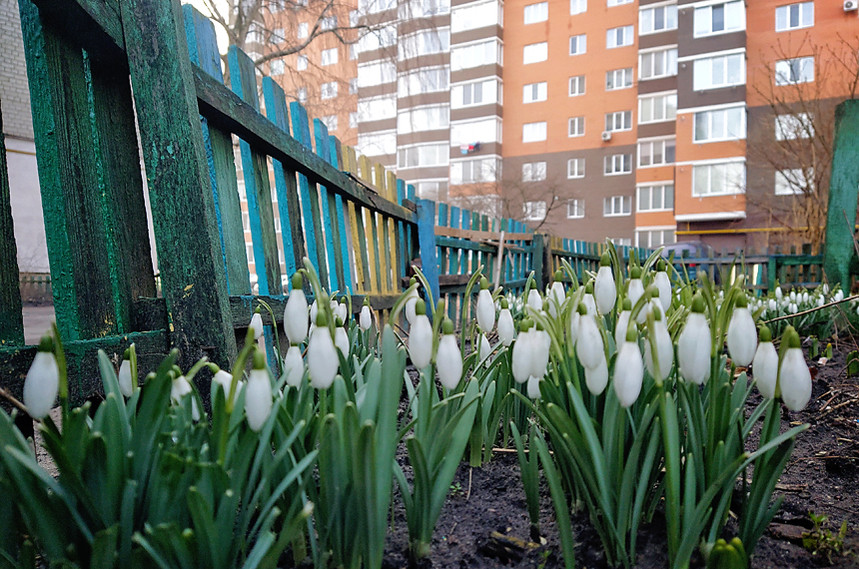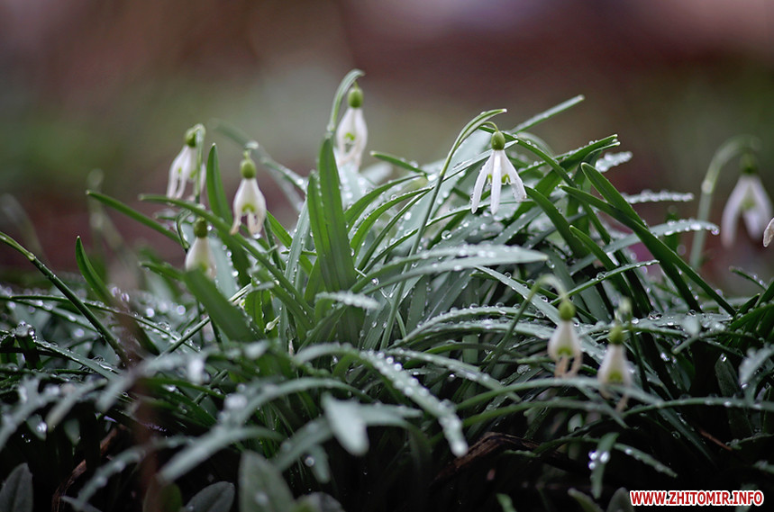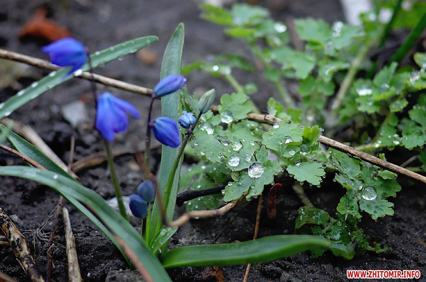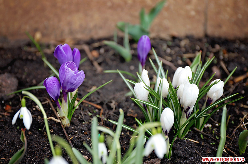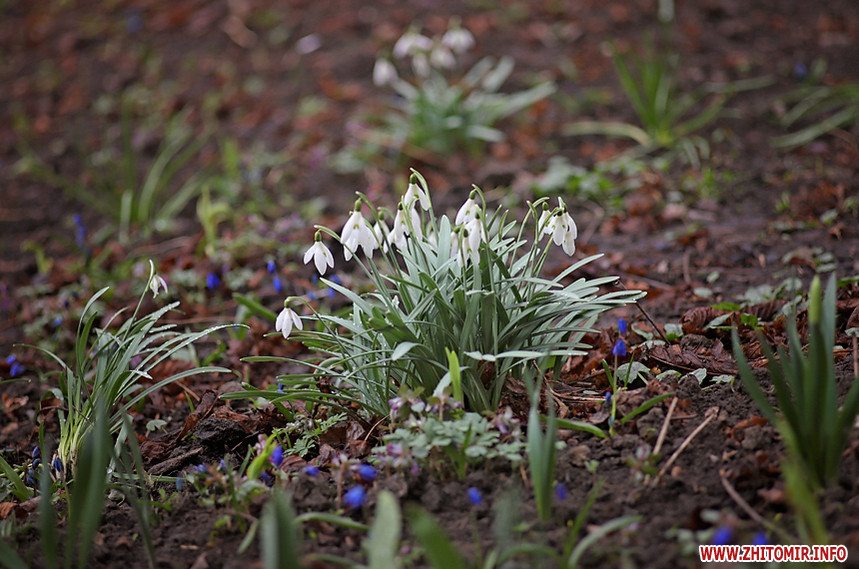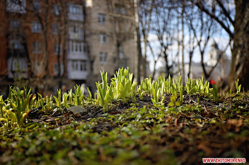 Останні дні березня та початок квітня порадували житомирян теплою весняною погодою. Цього року усі двори міста просто вкриті “ковдрами” з підсніжників. Окрім підсніжників з першим теплом у місті та на його околицях розквітли й інші весняні квіти - крокуси, ряст, маргаритки, медуниця, нарциси. З землі пробивається перша зелень, на деревах розпускаються бруньки.