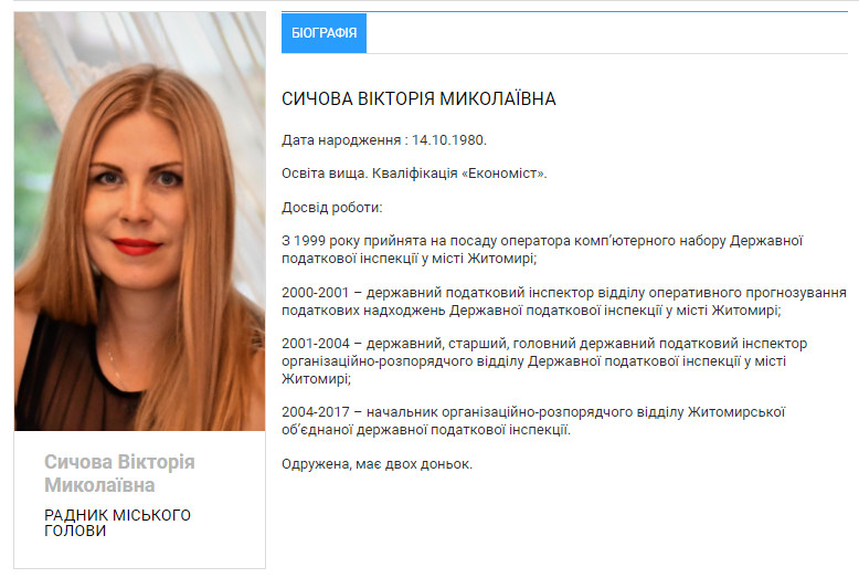 Нагадаємо, Вікторія Сичова була призначена на посаду радника Житомирського міського голови в листопаді 2018 року.