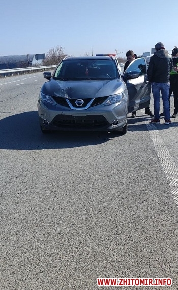 На трасі Київ – Чоп у Житомирській області 10 квітня сталася дорожнього-транспортна пригода за участі автомобіля Nissan Qashqai та мопедиста. Чоловіка, який був за кермом двоколісника, госпіталізували.