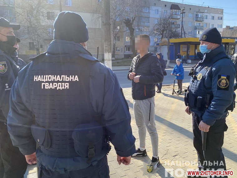 «Упродовж 9-10 квітня працівники Новоград-Волинського районного відділу поліції спільно з нацгвардійцями та спецпризначенцями роти поліції особливого призначення ГУНП провели заходи, спрямовані на зниження вуличної злочинності, попередження адміністративних та кримінальних правопорушень, а також дотримання громадянами встановлених обмежень під час карантину. На патрулювання міста додатково вийшли 90 поліцейських та нацгвардійців», - йдеться у повідомленні.