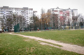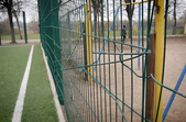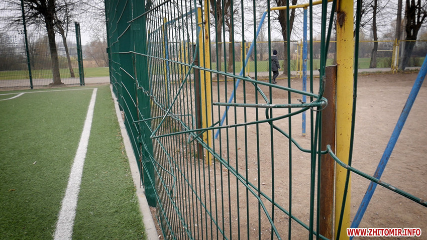 Інший реалізований проєкт – «Мультиспортивний майданчик біля ЗОШ№28 та №16». Вказана ціна реалізації – 999 995 грн. Огорожа пошкоджена, розмітка місцями стерлася, штучне покриття пошматоване, а на полі ями – такий вигляд сьогодні має цей проєкт.