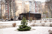 Поруч ще один проєкт бюджету участі – «Громадська інтернет-бібліотека «Велесова книга». Вказана ціна на реалізацію – 997 000 грн. Тут мали б бути USB-порти для підзарядки, чотири антивандальні сенсорні екрани, з доступом до світових бібліотек, сонячні фотомодулі. Але зараз інтернет-бібліотека зачинена, і побачити, що всередині, неможливо. Зовні на споруді також з’явилися малюнки.
