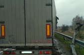 На 225 кілометрі траси Київ – Чоп у Житомирській області 14 квітня вантажівка потрапила в ДТП: збила електроопору, кілька дорожніх знаків та колесовідбійник.