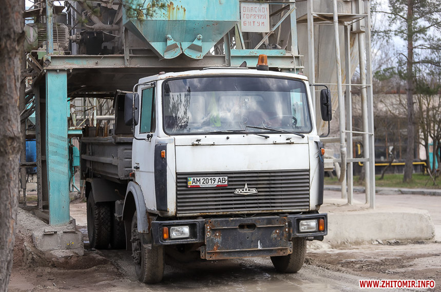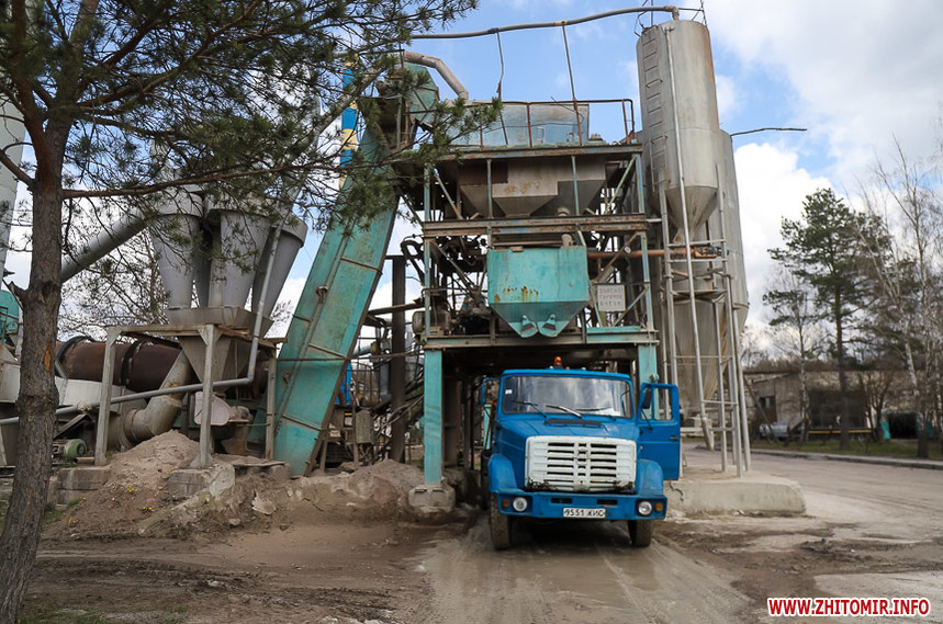 У квітні в Житомирі після зими запрацював єдиний у місті асфальтобетонний завод. Знаходиться він на вулиці Промисловій.