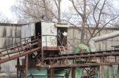 Мінеральні матеріали (щебінь фракції 5-10, щебінь фракції 10-20 і відсів) поступають через галерею – йдуть через дозатори по транспортерній стрічці в накопичувальні бункери. Після цього вони надходять в сушильний барабан.