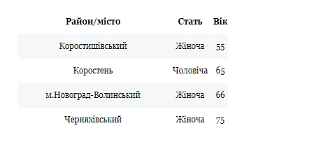 Як інформує пресслужба ОДА з посиланням на дані обласного лабораторного центру, за минулу добу на Житомирщині зареєстровано 4 летальні випадки від коронавірусної інфекції.