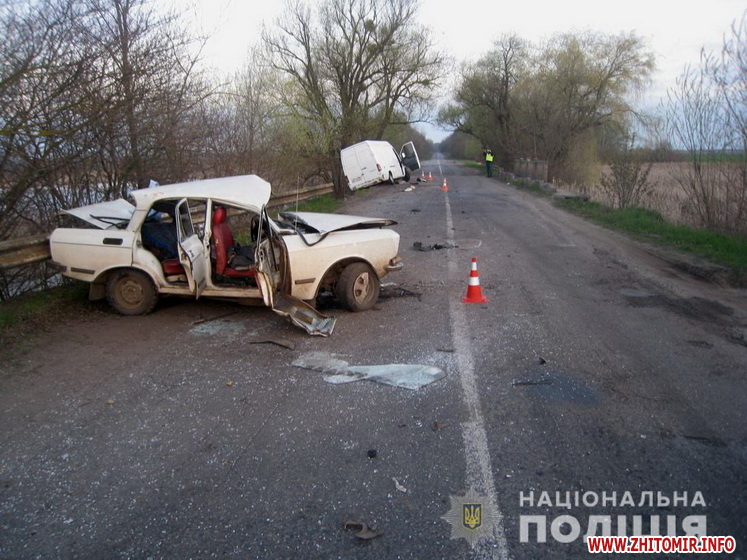 Вночі 29 квітня на трасі у Бердичівському районі Житомирської області «Москвич» виїхав на зустрічну смугу руху та зіткнувся з мікроавтобусом. У результаті ДТП один з водіїв отримав тяжкі травми.