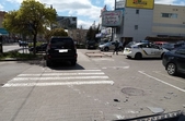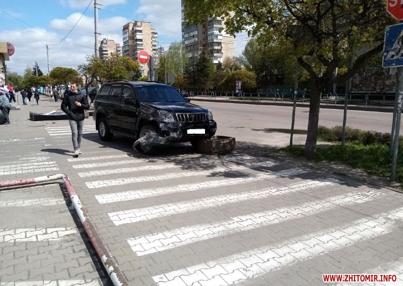 Біля ТРЦ «Глобал UA» 3 травня сталася дорожньо-транспортна пригода: позашляховик повалив сітілайт і врізався у парапет.