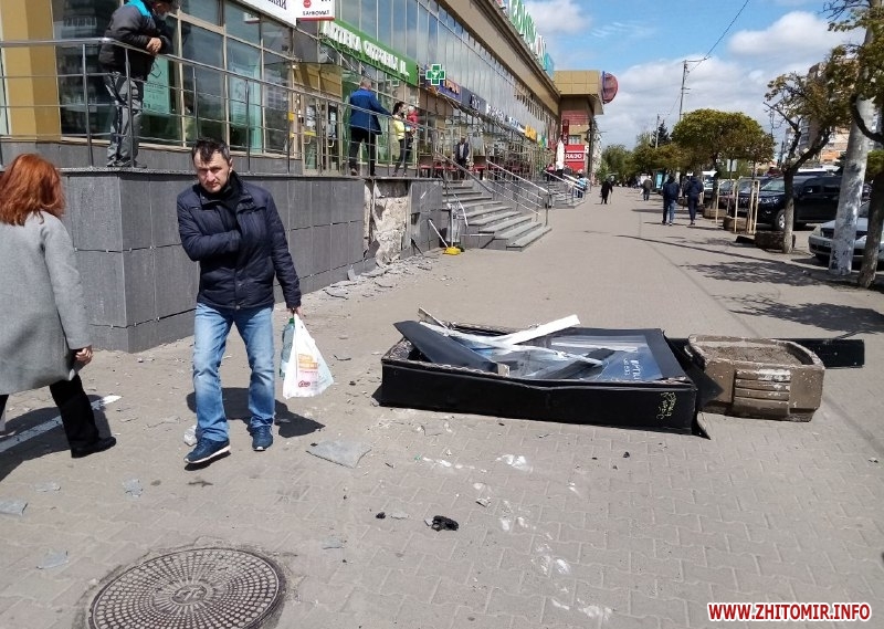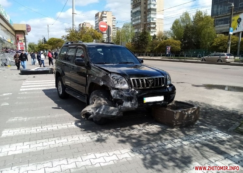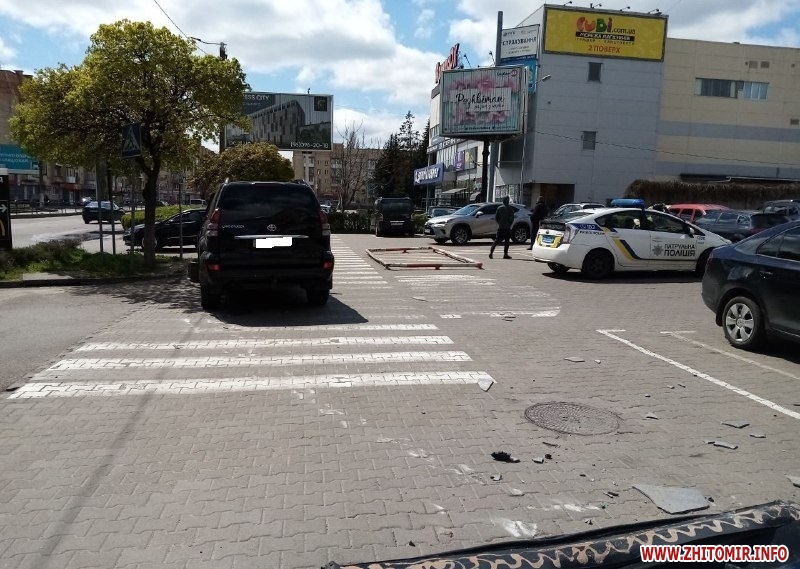 Близько 14:00 год., на момент прибуття на місце події журналіста Житомир.info, біля «Глобала» працювали працівники патрульної поліції. Автомобіль-учасник ДТП стояв упритул до клумби-«острівця», де він, очевидно, зупинився, знісши рекламну конструкцію і потрощивши плитку на парапеті. Зі слів патрульних, ДТП минулася без постраждалих.