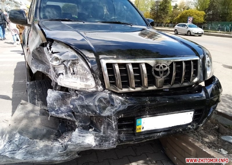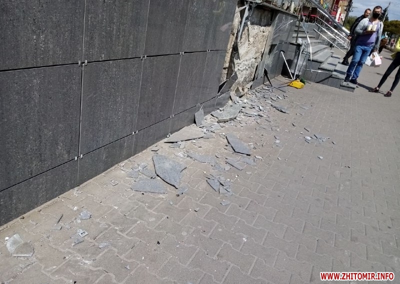 Як повідомляв Житомир.info, 22 вересня 2020 року в центрі Житомира на вулиці Перемоги, біля майдану Соборного, автомобіль вискочив на тротуар та в’їхав у парапет біля кафе. Момент ДТП зафіксували вуличні відеокамери.
